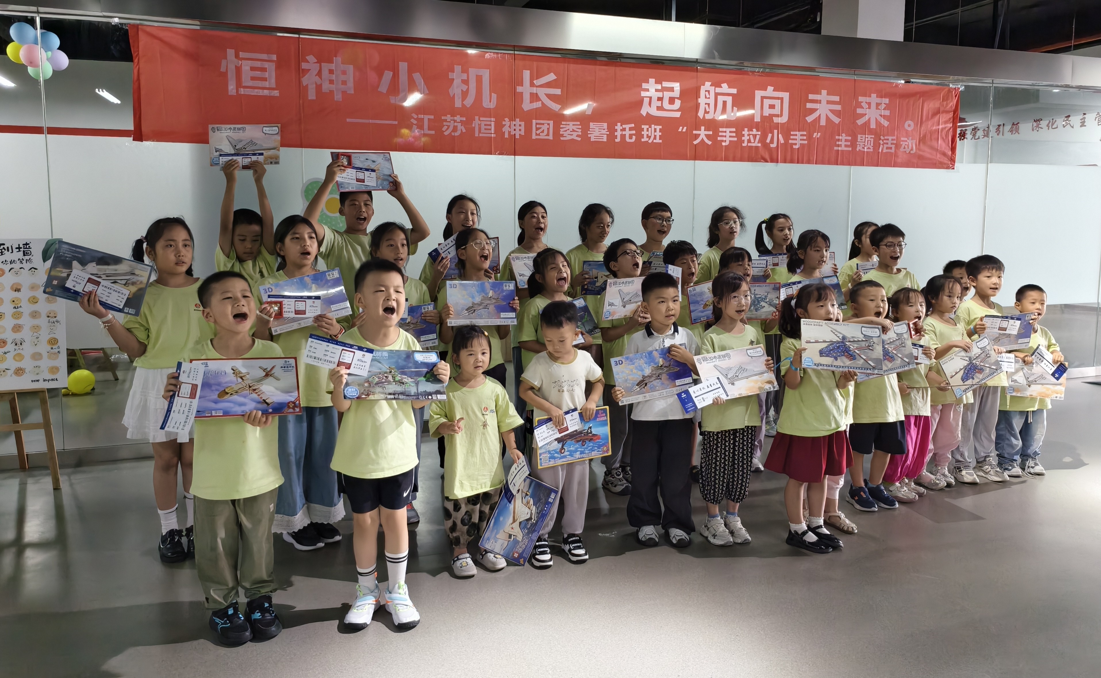 8月12日下午,恒神股份愛心暑托班的活動場地變身歡樂航空港,約50名職工子女化身 “恒神小機長”,在團委青年們的帶領和陪伴下,開啟了一場充滿歡笑與成長的航空主題奇妙之旅。這場以 “恒神小機長?起航向未來” 為主題的趣味游戲活動,讓孩子們在輕松愉快的游戲中收獲了知識、初步建立了團隊互助協作的觀念。開場破冰:舞蹈牽情誼,小隊齊集結隨著歡快的音樂旋律響起,活動正式拉開帷幕。5名團委青年與孩子們手拉手圍成圈,跟著節奏蹦跳旋轉,原本有些靦腆的小朋友們很快被活潑的氛圍感染,大廳里瞬間充滿了銀鈴般的笑聲。這場破冰舞蹈就像一根無形的線,迅速拉近了青年志愿者與孩子們的距離。在簡要的自我介紹后,大家通過抽取彩色手環,分成了紅、黃、藍、綠、白五支小隊,展開了一場場趣味比拼。趣味闖關:航空主題游戲里的知識與協作折紙飛機環節迅速點燃了孩子們的激情。大家拿著 A4 紙,跟著領隊老師學習折疊技巧,有的還別出心裁地畫上笑臉和花紋?!叭?、二、一,起飛!” 當數十架紙飛機穿過 “書架圓環” 時,大廳里爆發出陣陣歡呼?!拔沂瞧磮D小能手” 環節堪稱對 “速度與協作” 的考驗。當飛機拼圖被分發到各隊時,孩子們立刻圍坐在一起,七手八腳地開始拼接。“這塊應該在這里!”“不對,看機翼的形狀!” 團委志愿者們在旁耐心引導,既不包辦代替,又及時給迷茫的小隊員們支招。最終,各支隊伍都順利完成了拼圖任務?!帮w機連連看” 游戲成了記憶力大比拼。孩子們盯著倒扣的紙牌,時而蹙眉思考,時而拍手歡呼,團委志愿者們則在一旁計時鼓勁、還要熱心的小朋友不時用掌聲鼓勵加油。最終,所有孩子都贏得了木制飛機模型拼圖,獲勝隊伍的小朋友還優先挑選了心儀的款式。溫情收尾:徽章與機票見證成長,愛與理念扎根心間活動尾聲,每位小飛行員都領到了閃亮的 “恒神小機長” 徽章,驕傲地別在胸前。當印有每個孩子名字的 “結業機票” 被鄭重頒發時,不少小朋友舉著機票和模型向志愿者們開心地道謝。本次活動旨在讓職工子女在歡樂中感受航空精神,同時通過青年志愿者的陪伴,傳遞企業對員工家庭的關懷。這場持續兩小時的活動,像一根堅韌的 “情感碳纖維”,將企業、家庭與孩子緊緊相連。恒神團委的青年們用熱情與愛心,為孩子們的暑假添上了一抹明亮的色彩,也讓 “愛與未來一起飛” 的溫暖理念,深深扎根在每個人心中。